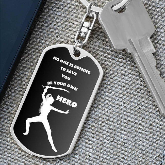 Be Your Own Hero / Gift for Her / Dog Tag Keychain