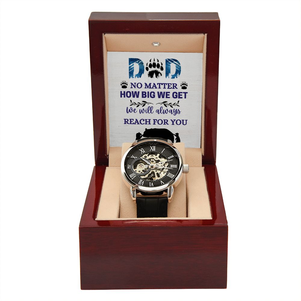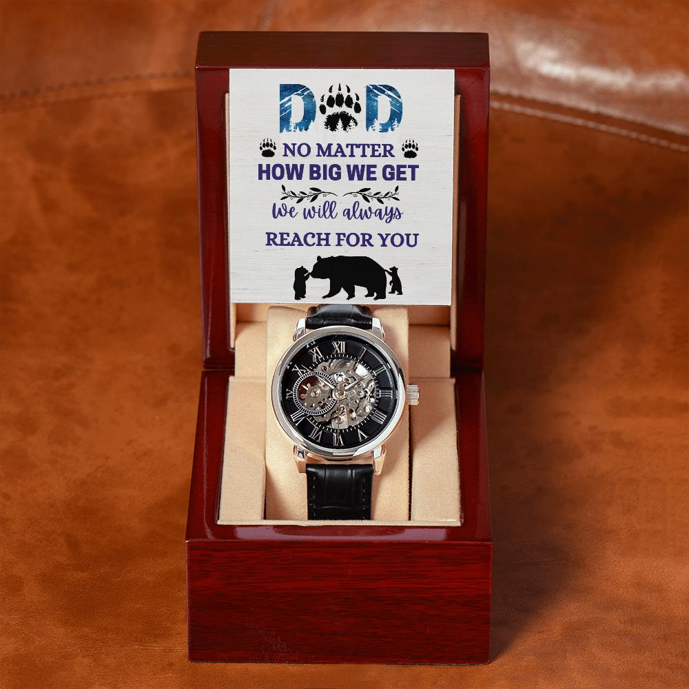 Your watch is lovingly packaged in our mahogany style luxury box for easy gifting.