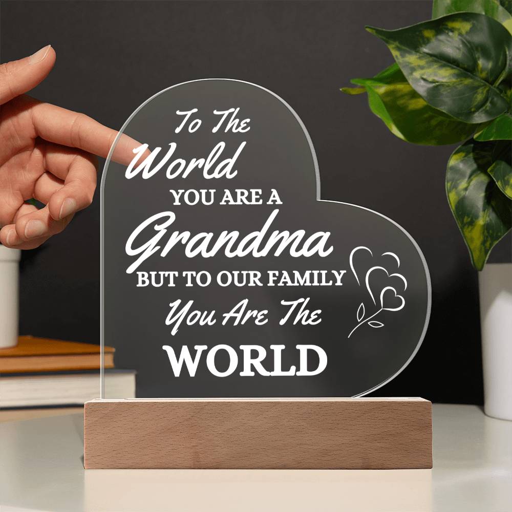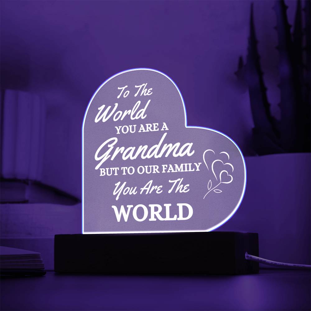 Grandma You are Our World / Acrylic Heart Plaque with LED light