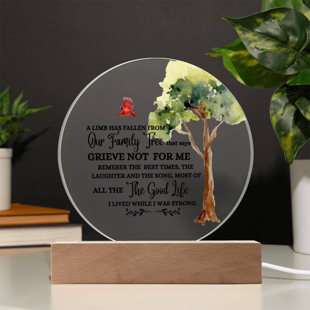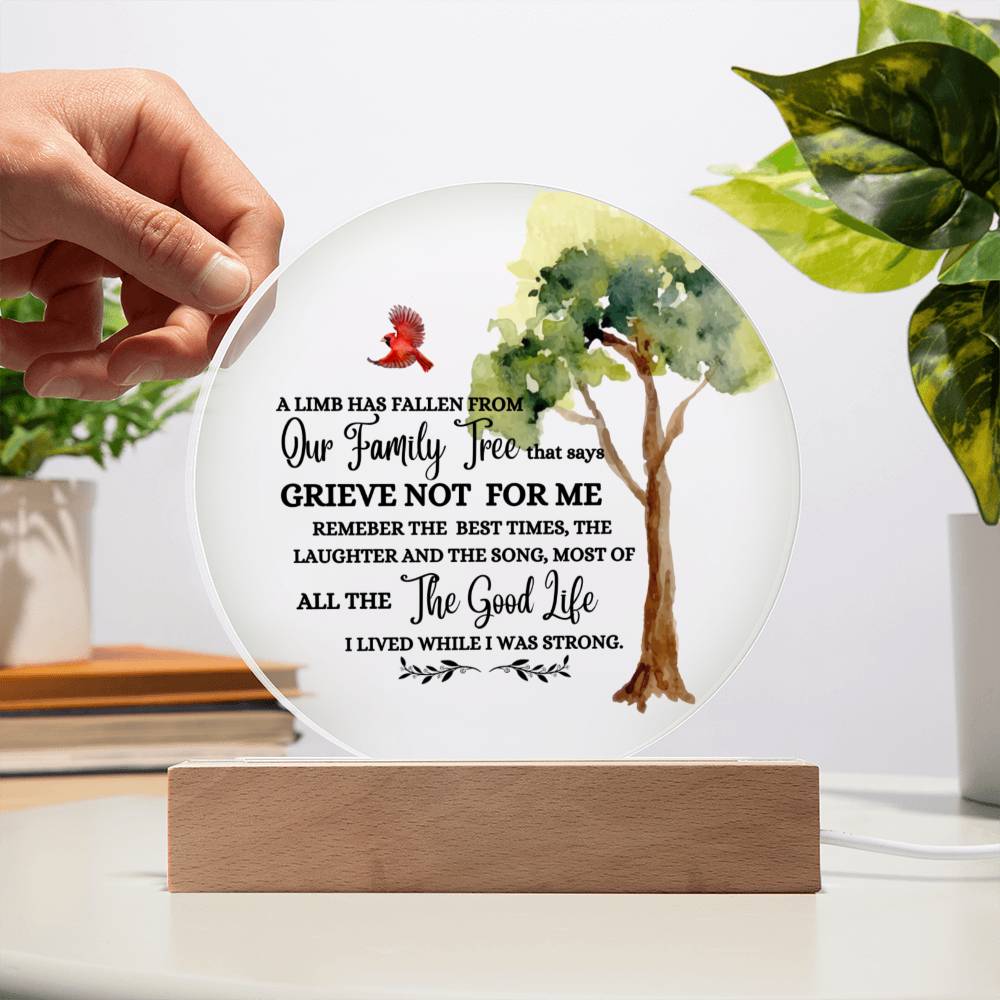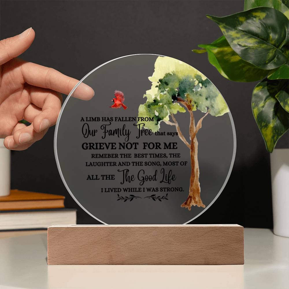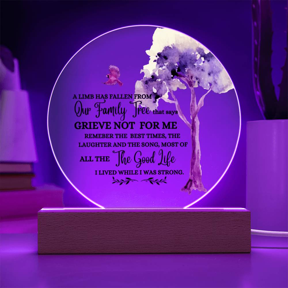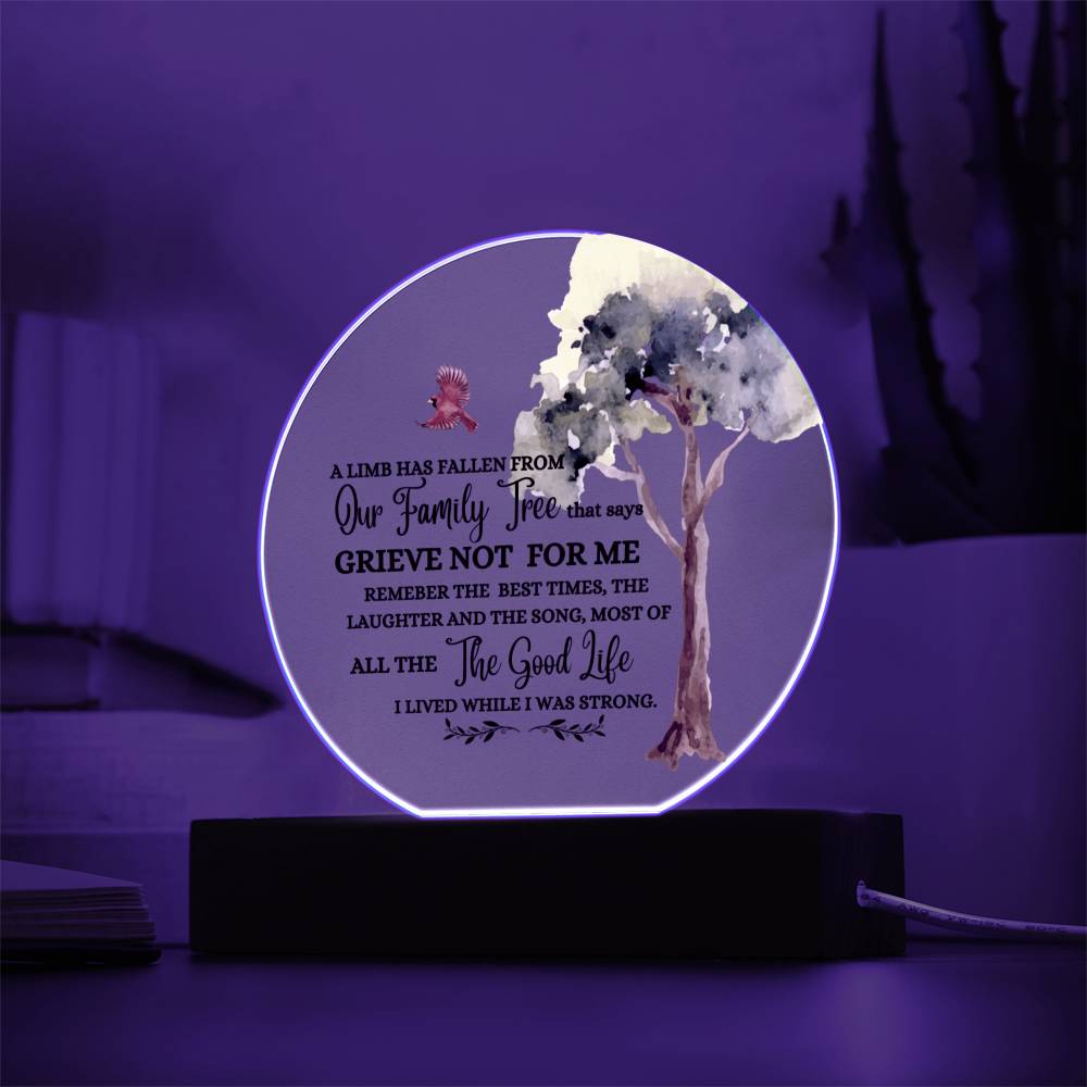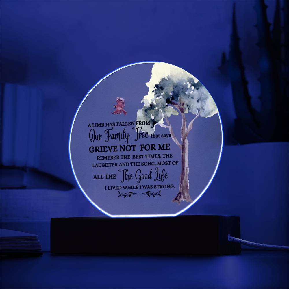 Grieve Not for Me Circle Acrylic Plaque with LED light