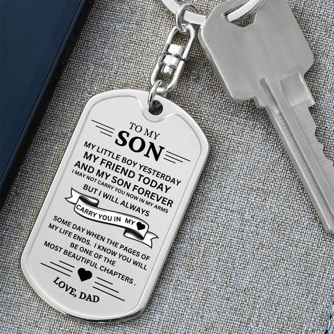 To My Son / Carry You in my Heart / Love, Dad / Dog Tag Keychain