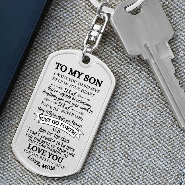 To My Son / Just Go Forth / Love, Mom / Dog Tag Keychain