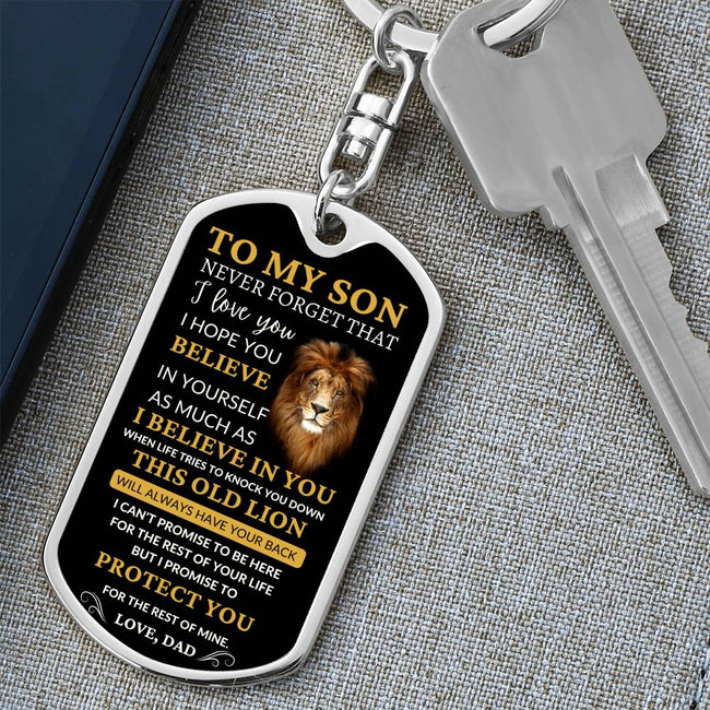 To My Son / Old Lion / Love, Dad / Dog Tag Keychain